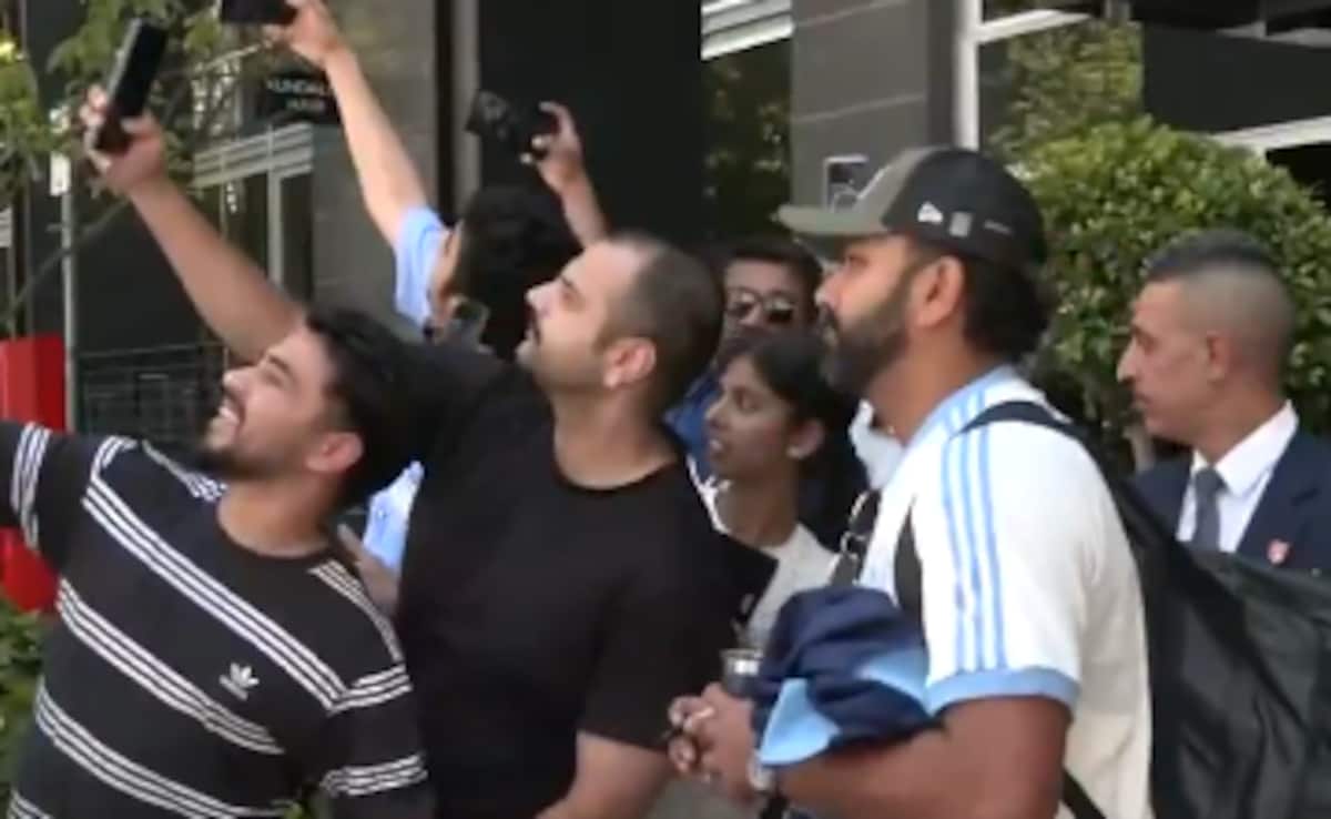 After taking part in the two-day warm-up match against Prime Minister's XI, Rohit Sharma-led Team India on Monday departed from Canberra for the Adelaide Test, which will be starting from December 6. Earlier on Sunday in the warm-up match, a four-wicket haul by pacer Harshit Rana, along with commanding knocks from Shubman Gill, Nitish Kumar Reddy, and Yashasvi Jaiswal, helped India secure a five-wicket win against Australia's Prime Ministers' XI at Canberra's Manuka Oval. While leaving, skipper Rohit and star India pacer Mohammed Siraj were seen taking selfies with the fans who were waiting outside the team hotel in Canberra.