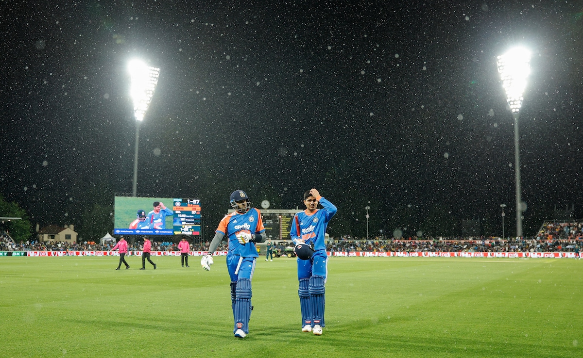 There were two breaks across the 9.4 overs that India had to endure and after the first break, next 4.4 overs turned out to be very productive for the visitors with 54 runs coming during that phase. The rain also meant that the ball was getting wet and Australian bowlers found it difficult to grip.