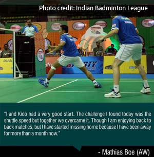 In the third match, Markis Kido and Mathias Boe kept the hopes alive for the Warriors with a 21-16, 21-14 victory over Masters B Sumeet Reddy and Manu Attri in the men's doubles competition to give their side a 2-1 lead in the tie.