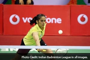 Hyderabad's Saina Nehwal came from a set down to humble Pune's Juliane Schenk. Hyderabad also won men's doubles and both men's singles ties to win 4-1 against Pune Pistons. Pune won the mixed doubles tie.