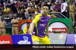 Men's singles: Yun Hu of Banga Beats beats Wei Feng Chong of Awadhe Warriors 21-11 21-20.