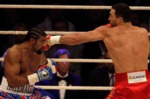 The 35-year-old Klitschko improved to 56-3 (49 KOs), while Haye dropped to 25-2 (23 KOs). The 30-year-old British fighter's only previous loss was in 2004, when he was knocked out by countryman Carl Thompson in a cruiserweight fight.