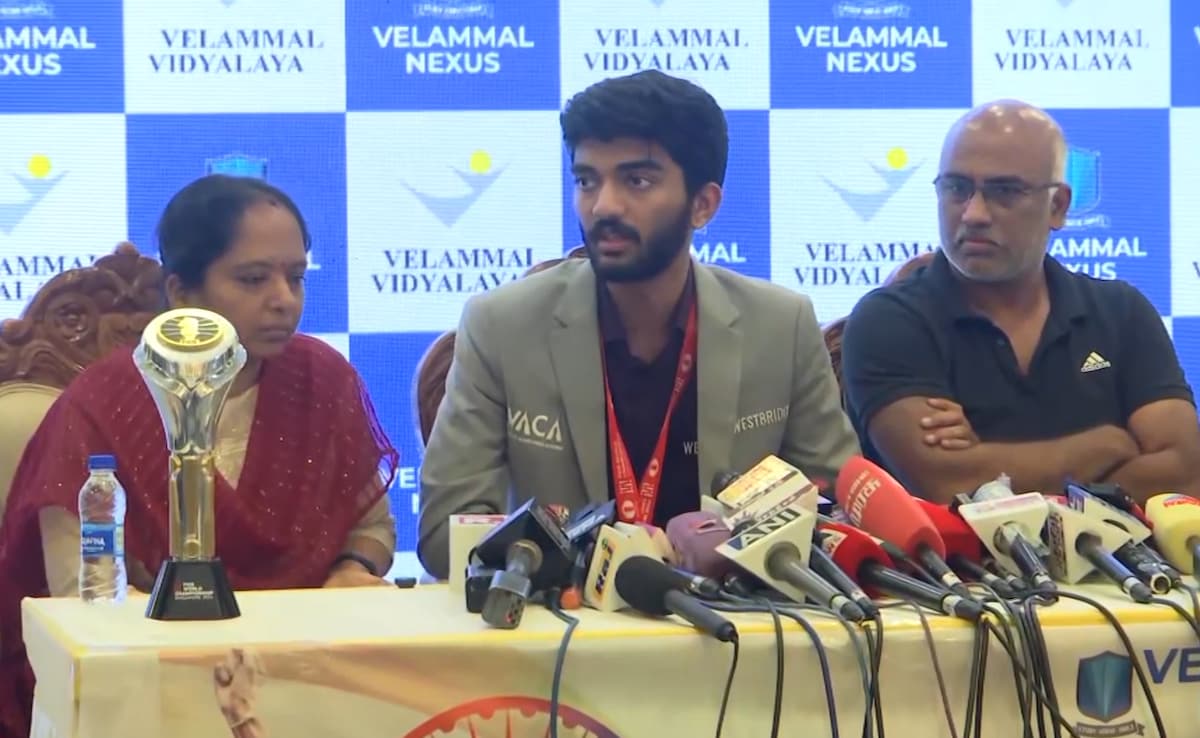 Fresh from his triumph at the World Chess Championship, Indian Grandmaster D Gukesh was felicitated at his school, Velammal Nexus, in Chennai on Monday. Gukesh, who became the youngest world champion last week after beating China's Ding Liren in Singapore, also addressed the media with his parents sitting beside him. The 18-year-old received a rousing reception upon his arrival in Chennai, following his triumph over Ding. Speaking at the press conference, Gukesh opened up on the mental and emotional setbacks he had to deal with during the 14-game tie against former champion Ding.