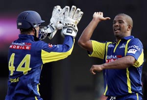 # Albie Morkel and Bravo were involved in a seventh wicket partnership of 26 (unbroken) - Chennai's best in the Champions League Twenty20.
