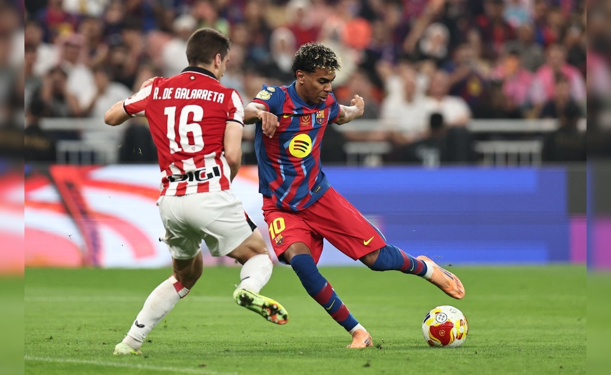 Raphinha netted twice as Barcelona strolled into the Spanish Super Cup final with a dominant 5-0 semi-final win over Athletic Bilbao on Wednesday in Saudi Arabia. The holders and record 15-time champions will face either Real Madrid or Atletico Madrid, who meet Thursday, in Sunday's final. Hansi Flick began with teenage star Lamine Yamal on the bench but his team was still able to ease to a comfortable victory at the King Abdullah Sports City stadium in Jeddah. The La Liga leaders have now won nine matches in a row across all competitions and Athletic, enduring a difficult season, were ripped to shreds.