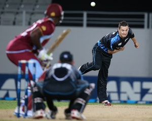 The West Indies reply was quickly in trouble when Adam Milne, a 21-year-old quick who New Zealand are slowly introducing to international cricket, removed Lendl Simmons with his fourth ball, a 150 kmh delivery.