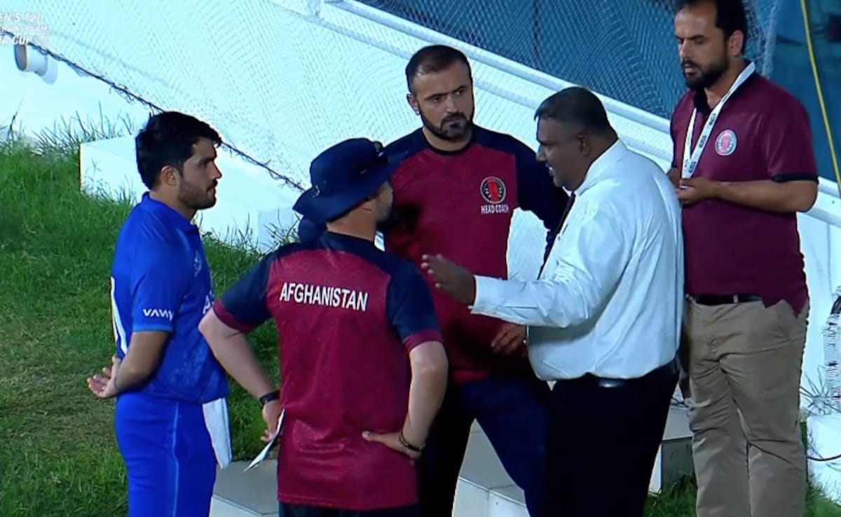 The controversy heightened when it seemed as if the Afghanistan coaching unit had advised Zubaid to not leave the field of play, as they engaged in discussion with the match officials. At one point, the coaching staff of both India and Afghanistan could be seen heavily debating the dismissal.