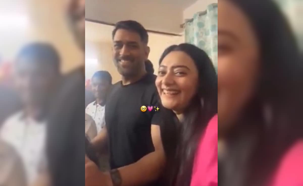 In a video going viral, Dhoni was lauded for attending a friend's birthday party. In that gathering, a woman was over the moon as she got to click a photo with the great. Her expression has gone viral.