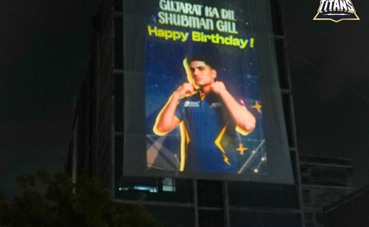 Gujarat Titans (GT) wished their skipper Shubman Gill a very happy 26th birthday in a grand style, with a spectacular projection in Ahmedabad, lighting up the city. On the projection by GT, it was written, "Gujarat Ka Dil, Shubman Gill". The larger-than-life tribute was the highlight of the team's celebration that reflected the skipper's special bond with Gujarat Titans supporters. Gill has been captaining GT for the past two seasons, making it to playoffs this year following a finish in the bottom half of the table last year. He ended this year's Indian Premier League (IPL) as the fourth-highest run-getter with 650 runs at an average of 50.00, with a strike rate of 155.88, including six half-centuries and a best score of 93*.