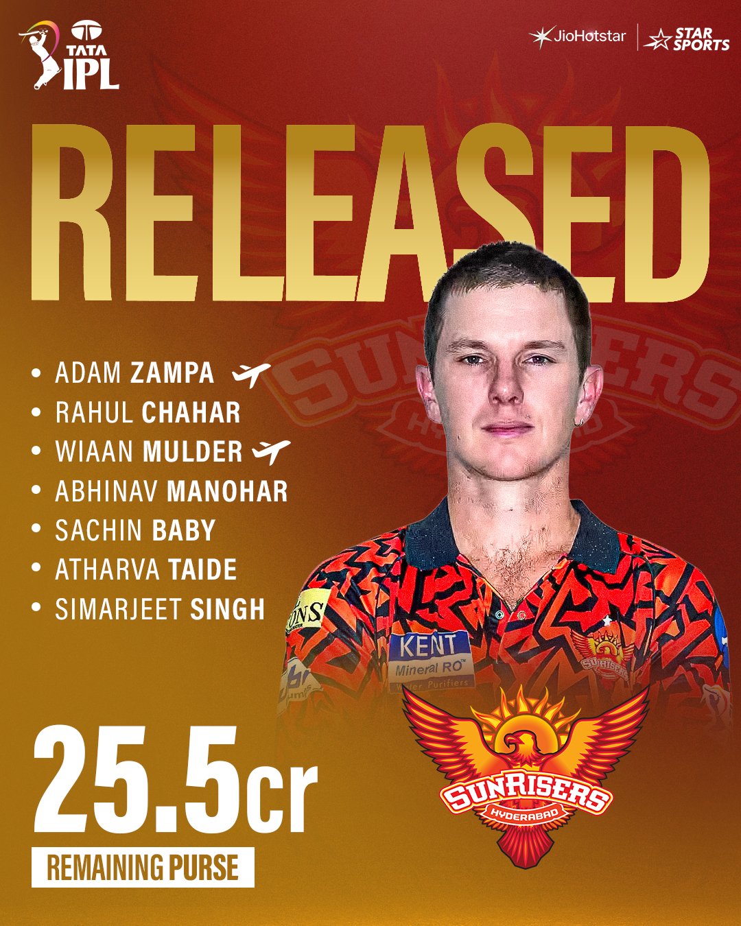 SRH RETAINED & RELEASED PLAYERS pic.twitter.com/6UTg4unxsR