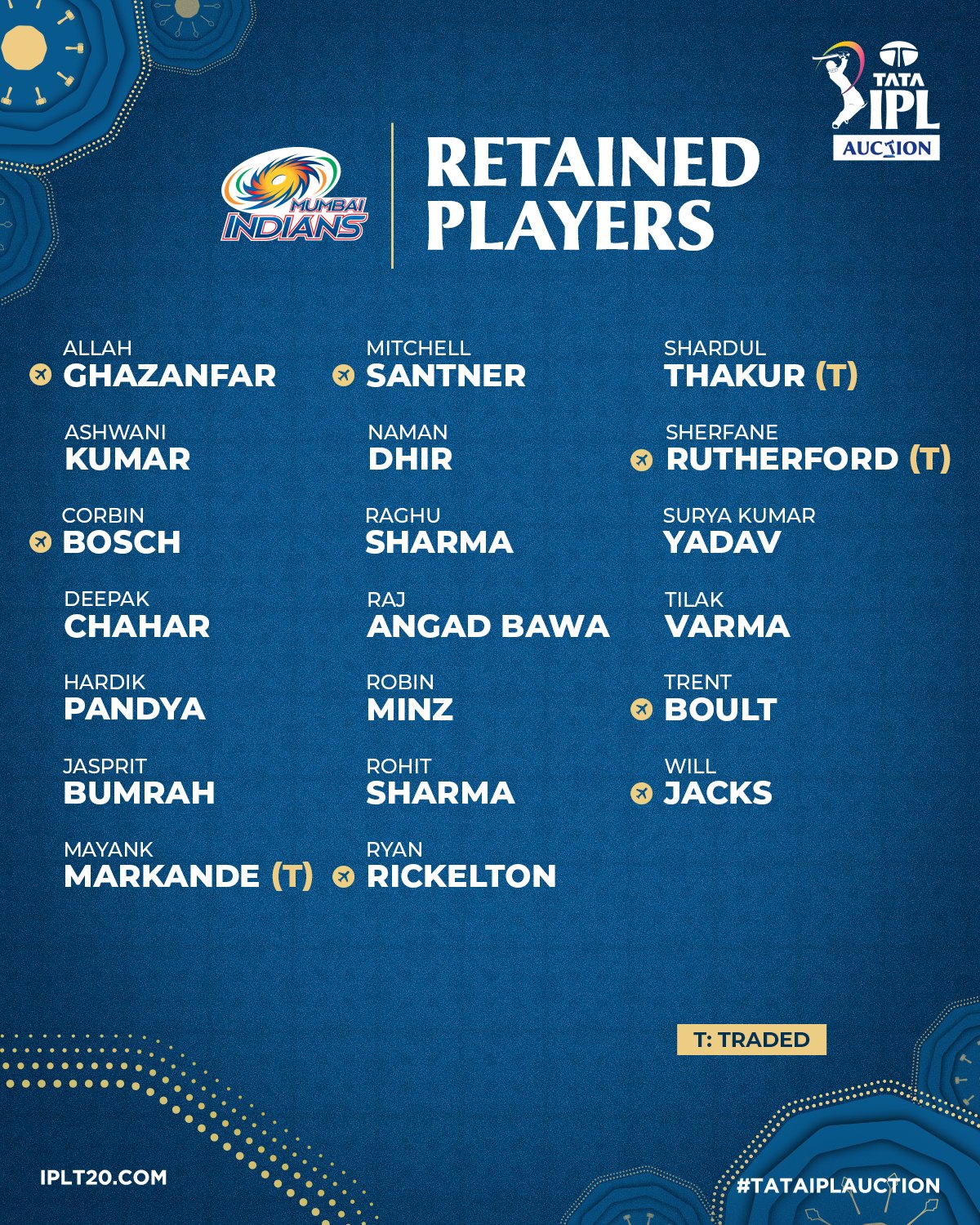IPL Retention LIVE: MI Retained Players List!