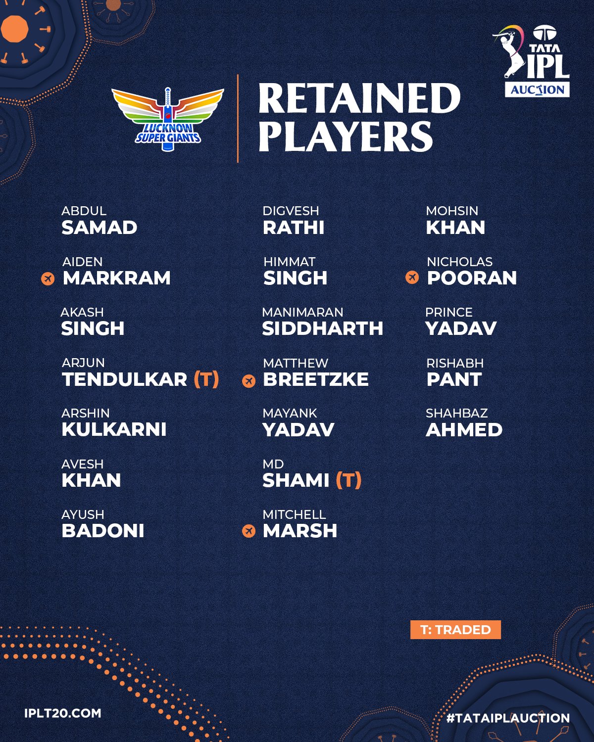 LSG RETAINED AND RELEASED PLAYERS LIST. pic.twitter.com/6Jfkuhfg7w