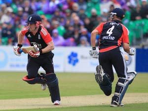 Morgan, who was leading the team for the first time, leapt to Trott's defence and said he was happy to have the experienced batsman on the crease when wickets were tumbling at the other end. Morgan captaining his adopted country for the first time in his hometown of Dublin scored 59 off 65 balls.