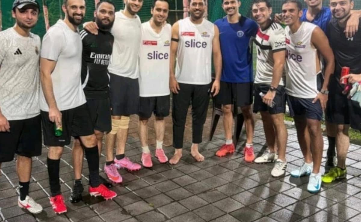Former India skipper and Chennai Super Kings legend MS Dhoni left the internet stunned after he was seen in a Mumbai Indians (MI) training jersey. In a picture posted by entrepreneur Arjun Vaidya on social media, Dhoni was seen posing with a group outside a football pitch and he was wearing a MI training jersey. The picture was captioned - "Football game with MS". The picture quickly stirred conversation on social media as fans expressed their feelings. While CSK fans were left completely stunned, there were some MI fans who were happy with Dhoni sporting their jersey - off the field.