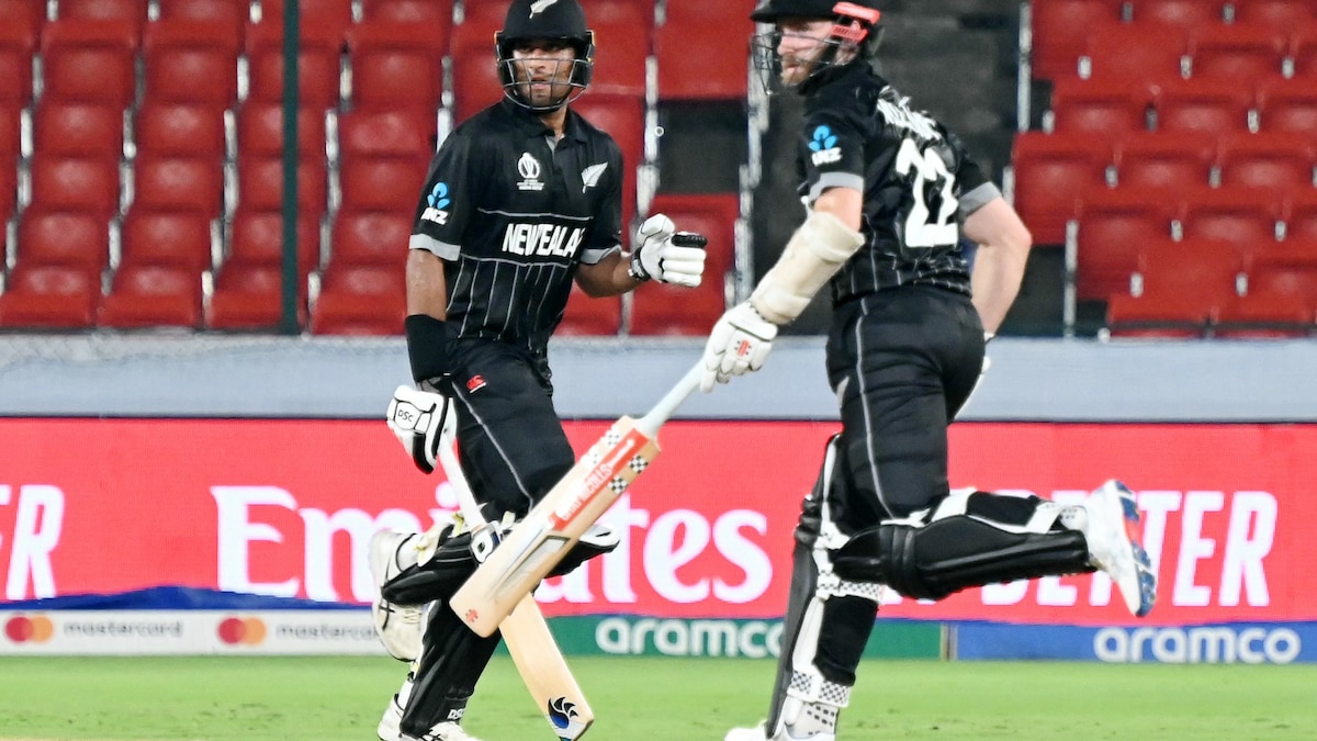 Bye! Fuller and outside off. Rachin Ravindra misses his drive and takes a quick bye.