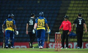 Eranga put more pressure on New Zealand when he trapped opener Rob Nicol leg-before with his third delivery before Perera had James Franklin caught behind.