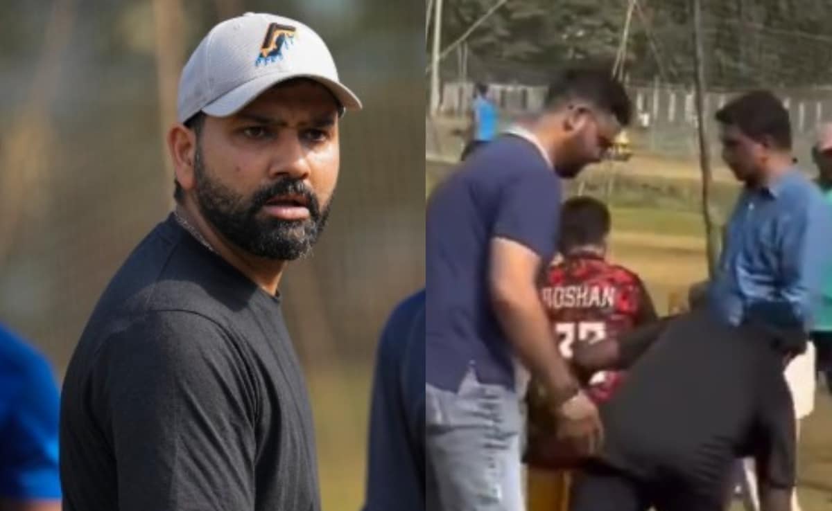 A video has gone viral on social media, showing Rohit Sharma scolding a person for trying to stop a young fan from meeting him.