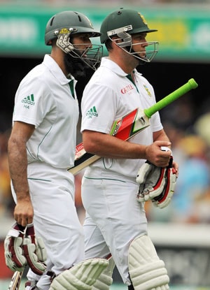 Earlier, Petersen also had a let off, getting the benefit of the doubt when Australia referred a not out decision to the TV umpire for an lbw appeal by Ben Hilfenhaus. The ball pitched just outside the line and appeared to hit in front, on Petersen's front toe, when he was on 51.