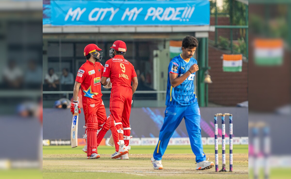 Earlier, after rain delayed the start, Purani Dilli 6 made the most of their seven overs. Despite losing both Vansh Bedi and Samarth Seth, early in the first over to Aman Bharti (2/17 in 2 overs), the middle order came alive. Dev Lakra and Yug Gupta produced a stunning counterattack, stitching together a blazing 117-run stand for the third wicket.