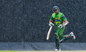 The third one-day international between Sri Lanka and Pakistan was abandoned due to rain in Colombo on Wednesday. Pakistan were 12-2 off 6.2 overs after electing to bat when play was called off, with Asad Shafiq unbeaten on five and skipper Misbah-ul-Haq yet to open his account. Pacemen Lasith Malinga and Nuwan Kulasekara each bagged one wicket for Sri Lanka. Sri Lanka made one change from the team which played the last game as they rested left-arm spinner Rangana Herath and brought in debutant Sajeewa Weerakoon. Pakistan replaced paceman Rahat Ali with Shafiq. The five-match series is currently tied 1-1, with Pakistan winning the opening one-dayer by six wickets and Sri Lanka winning the second game by 76 runs in Pallekele. The fourth one-dayer will be played in Colombo on Saturday.