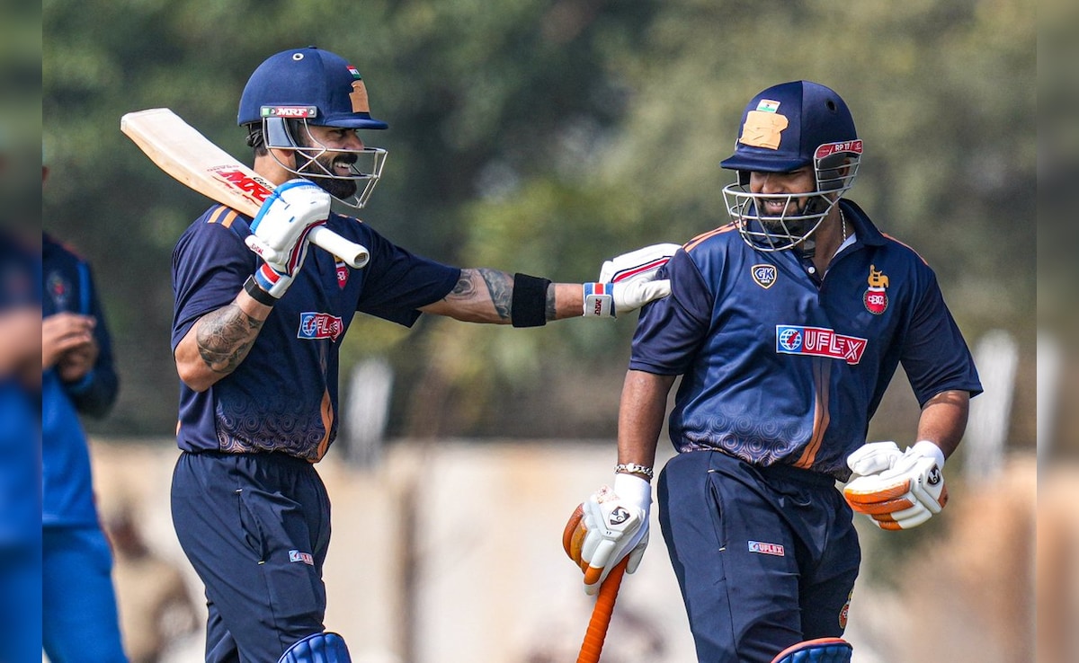 Star batters Virat Kohli and Rishabh Pant made solid fifties, while Gujarat batters pressed the self-destruction button as Delhi eked out a tight seven-run win in their Elite Group D match of the Vijay Hazare Trophy on Friday. Player of the match Kohli (77, 61 balls) and Pant (70, 79b) carried Delhi to a modest 254 for 9 in 50 overs. Despite looking solid in pockets, Gujarat folded for 247 in 47.4 overs. Kohli and Pant offered the main story thread of the day with knocks of contrasting nature. Kohli had to walk in earlier in this match too after the early departure of opener Priyansh Arya, and looked in excellent touch. After blocking the first ball, Kohli straight drove pacer Chintan Gaja for a four, manifesting his rich vein of form. While other Delhi batters were often pushed to a tight corner by Gujarat bowlers, Kohli was fluency personified in his pet format of the game. A pulled six off Gaja and a stunning flicked four off Arzan Nagwaswalla followed as Kohli slipped into the top gear. The 37-year-old reached his fifty in 29 balls that had 10 fours and a six in a wonderful exhibition of shot-making. The veteran batter brought up his 85th List A half-century off Ravi Bishnoi, carving the leg-spinner for a boundary over the covers. A second century on the trot looked a certainty but a lovely ball from left-arm spinner Jayswal (4/42) ended his tenure. Jayswal detected Kohli's little shimmy very early, and fired one past the batter to get him stumped by Urvil. Delhi was 108 for four then, and required some momentum to drag the innings back on track. A couple of overs back, Jayswal had also accounted for Nitish Rana and Arpit. But Delhi found a saviour in skipper Pant, who eschewed his aggressive tendencies to keep his side's innings together. There were no archetypal Pant shots until he went past fifty in 64 balls. The first sign of innovation came in the 66th ball when he tried to execute a falling-scoop off Bishnoi, and 12 balls later he again attempted a similar shot off Gaja. However, Pant's growing impatience finally ended in him losing the sticks to Jayswal, also signalling the end of a 73-run alliance with Harsh Tyagi (40). Simarjeet and Ishant Sharma added 19 runs for the final wicket to take Delhi past the 250-run mark. Â
