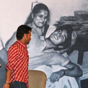 The photograph is of a young Tendulkar lying on the lap of his parents and adorns the cover of the book.