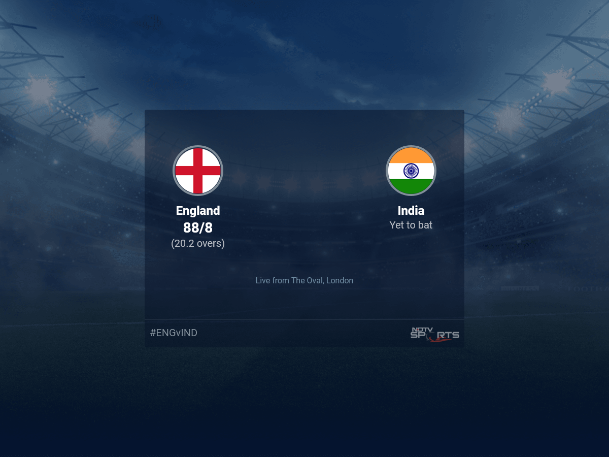 A dedicated team of experts bring you live score, live cricket score, live match update on Sports.NDTV.com. After 20.2 overs, England are 88/8. The live updates of England vs India scorecard is also available. It is the perfect platform to follow your favourite teams in England vs India, 2022. Keep a track on your favourite batsmen and bowlers through England vs India, 2022 today match, ball by ball commentary, England vs India, England vs India live score, England vs India scorecard. Follow the excitement of the England vs India, 2022 on Sports.NDTV.com as you can follow live match updates and live cricket score through our platform.