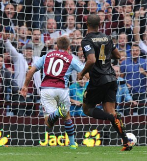 However, a fine free-kick from Leandro Bacuna saw Villa equalise in the 73rd minute before Andreas Weimann ran clear and beat Joe Hart two minutes later to give Paul Lambert's side a stunning win.