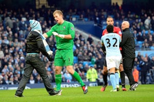 City goalkeeper Joe Hart had to restrain one young fan from getting at Ferdinand after the coin-throwing incident, prompting the United defender to thank his one-time England colleague on Twitter.