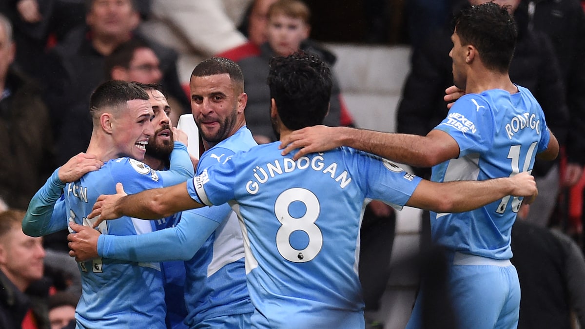 Chelsea's lead at the top of the table is cut to two points as City move up to second, a point ahead of Liverpool, who travel to West Ham on Sunday.