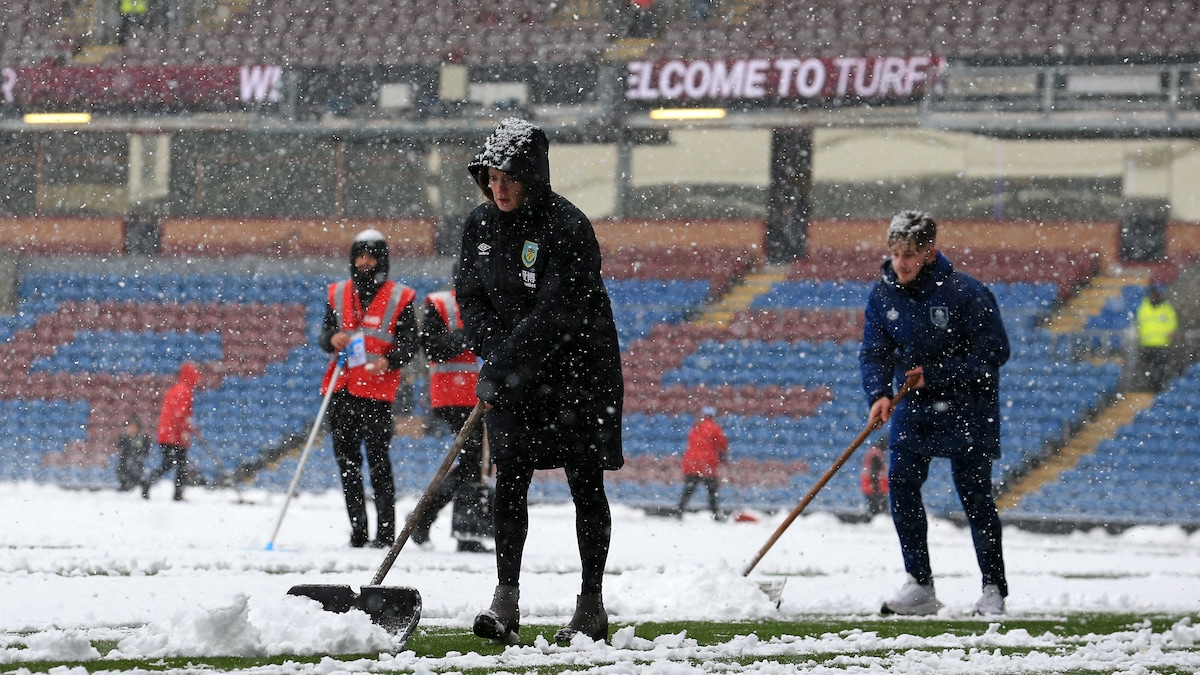 Burnley manager Sean Dyche told the BBC the snow was falling so thickly that it was re-covering the pitch every time it was cleared.