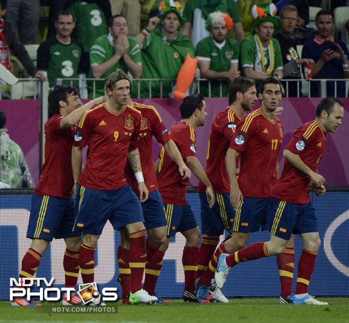 Riding on goals from Fernando Torres, David Silva and Cesc Fabregas, Spain romped home to a convincing victory against the Republic of Ireland in a crucial Group C match at the Gdansk Arena.
