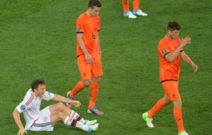 Two years after they reached the World Cup final, the Netherlands go down as the major flop of Euro 2012. Premier League top scorer Robin van Persie managed just one goal, Bundesliga top scorer Klaas-Jan Huntelaar got none. In losing all three group games, the Netherlands' stars played as if they were looking out for themselves, instead of each other. They went home having proved that even in Dutch there is no 'I' in 'team.'