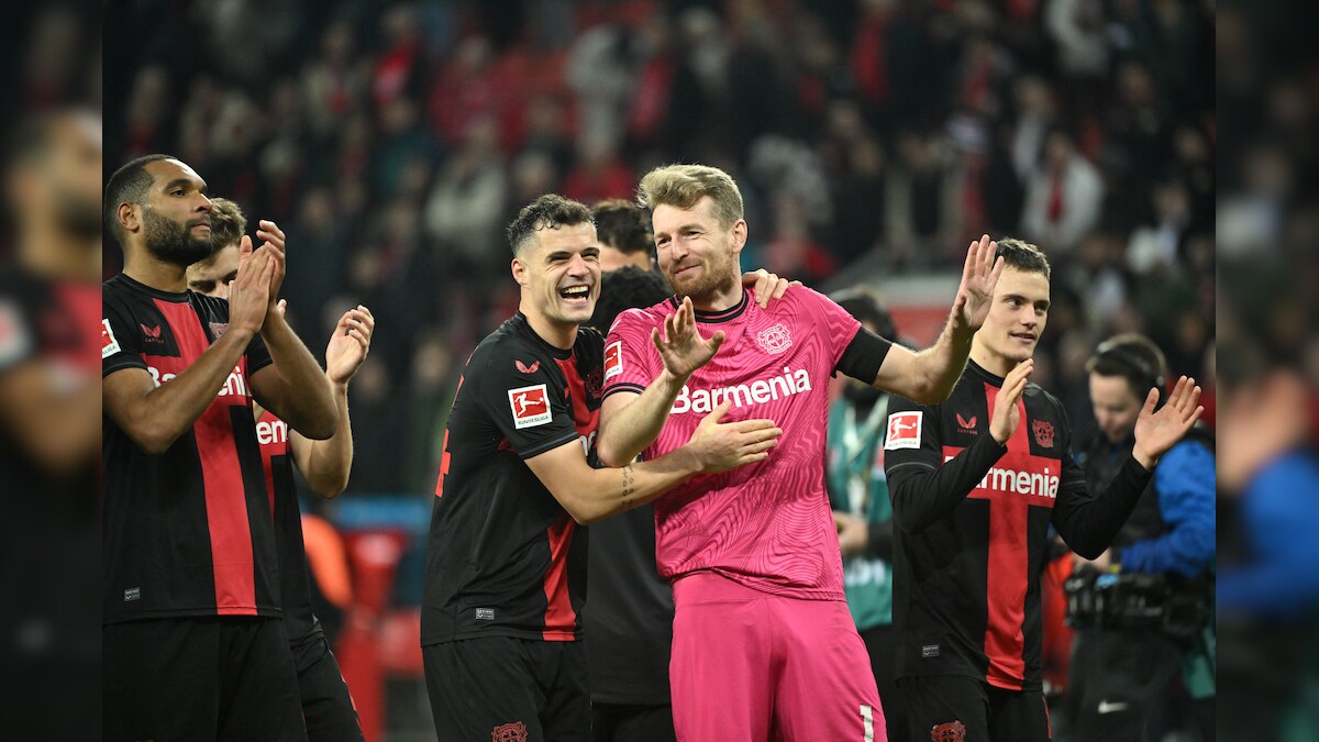 Nathan Tella and Florian Wirtz scored as Bayer Leverkusen beat 10-man Wolfsburg 2-0 on Sunday to edge their team closer to a maiden Bundesliga title. Bayern Munich's 8-1 win over Mainz on Saturday, including Harry Kane's fourth hat-trick of the season, had cut the gap to seven points. Now, with nine games remaining, Leverkusen, who are still unbeaten in all competitions this season, sit 10 points ahead. "It wasn't easy, but it was highly deserved," said Leverkusen's Granit Xhaka. "I'm sure the fans would have wished for more goals, but three points are three points."