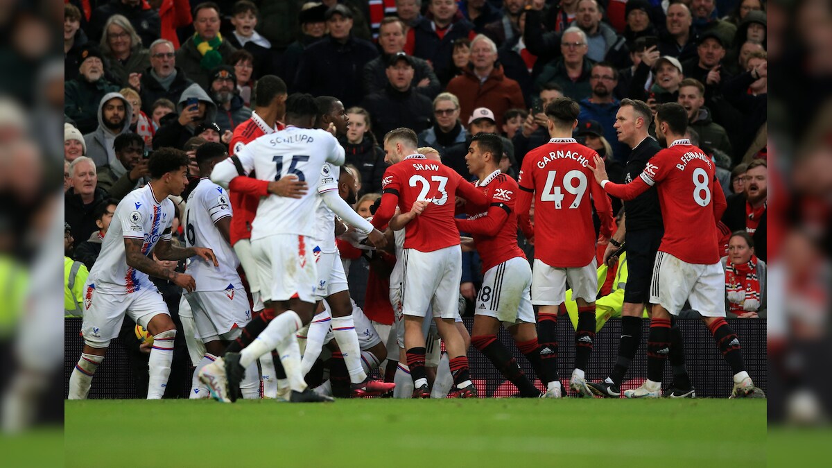 Manchester United held their nerve to beat Crystal Palace 2-1 in a close-fought Premier League encounter but the match was not without its fair share of controversies. United midfielder Casemiro received the first red card of his career after apparently grabbing Will Hughes by his crowd following an on-field altercation. Chaos ensued after Jeffrey Schlupp's tackle on Antony and the VAR review showed that Casemiro was guilty of the offense. The midfielder was shown a straight red card by the referee and this means that he can miss up to three matches for Manchester United as punishment.