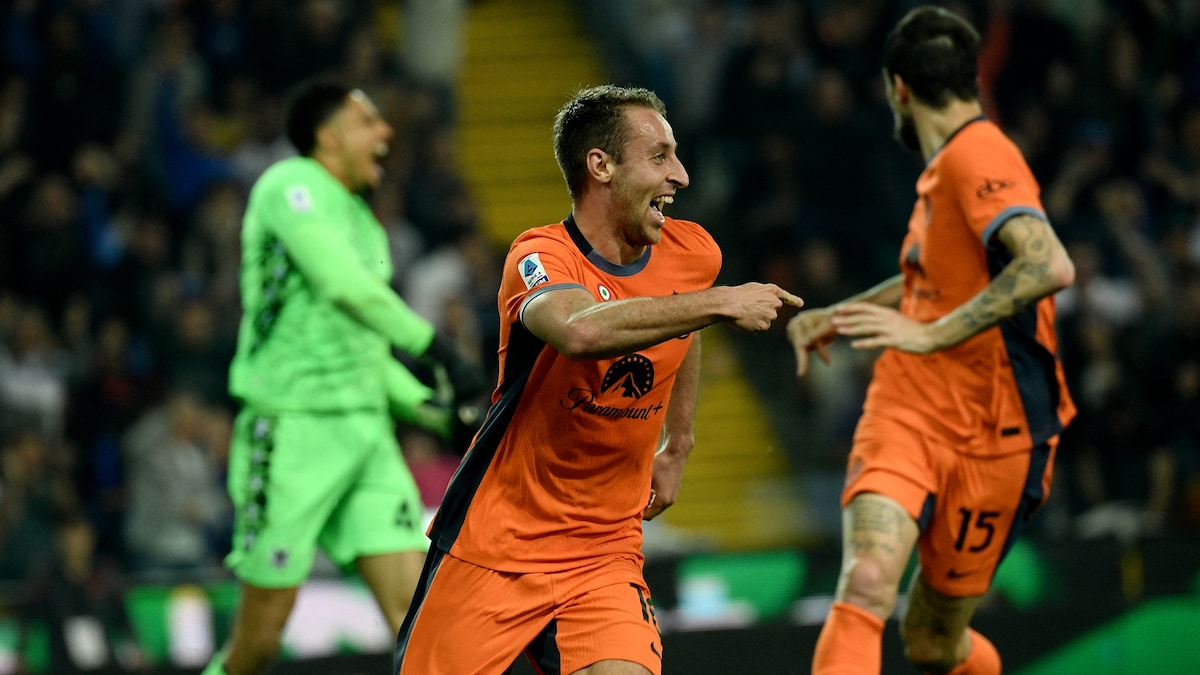 Davide Frattesi fired Inter Milan one step closer to the Serie A title with his last-gasp winner in Monday's comeback 2-1 victory at struggling Udinese. Italy midfielder Frattesi poked home the decisive goal in the fifth minute of stoppage time in Udine to maintain Inter's 14-point lead at the top of the table with seven matches left in the season. Inter looked to be heading for a draw as they toiled to add to Hakan Calhanoglu's penalty, scored nine minutes after half-time, which levelled Lazar Samardzic's freak deflected opener for Udinese.