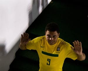 Players from both teams lined up near the sideline and applauded Ronaldo as he left the field at halftime. Visibly moved, he put the Brazilian flag on his back, and with the ball in his hand, went around saluting the fans that packed the Pacaembu stadium. There were banners remembering the matches in which he scored each of his 15 World Cup goals.