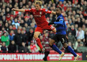 Liverpool had taken the lead on 21 minutes when a corner from Steven Gerrard was nodded home by defender Agger.