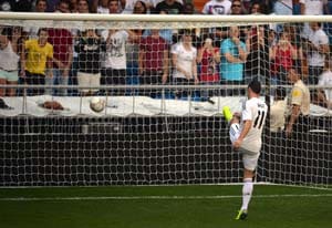 Earlier, Bale had delighted adoring fans at the Santiago Bernabeu by greeting them in Spanish and taking to the pitch in his number 11 Real shirt for the first time to fire balls into the crowd.