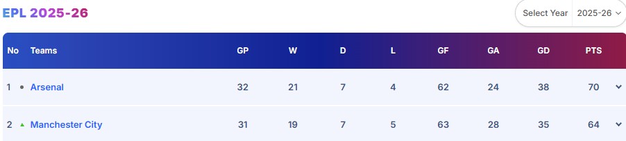 Man City vs Arsenal LIVE: The points table scenario