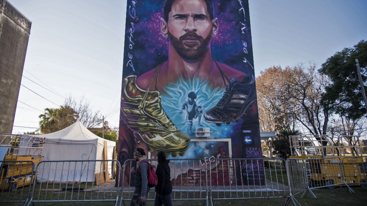 "From another galaxy... and from my neighborhood," declares a freshly painted mural of Lionel Messi in the Argentinian town where he was born 34 years ago. The mural covers one end of a four-story apartment building in the La Bajada neighborhood of Rosario where the star lived as a child, and faces the primary school he attended. "We thought of Leo and the admiration we have for him and we thought that there is nothing big enough to express that in Rosario," Marlen Zuriaga, one of the muralists, told AFP.
