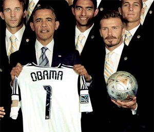 Obama welcomed Beckham and the Los Angeles Galaxy to the White House on Tuesday to celebrate their third Major League Soccer Cup. The president joked that the star-studded Galaxy, led by Beckham, midfielder Landon Donovan and forward Robbie Keane, are the "Miami Heat of soccer."