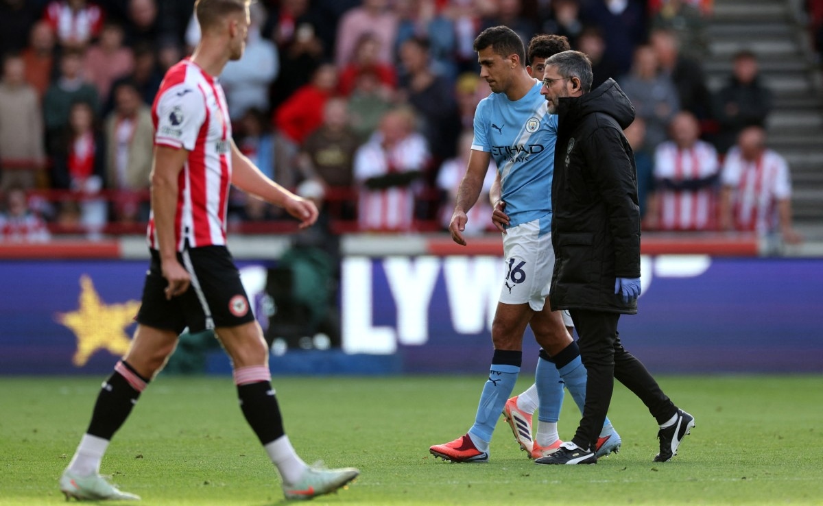 Rodri was forced off with a suspected hamstring problem in the first half of Man City's 1-0 win at Brentford on Sunday, the latest injury blow to hit last year's Ballon d'Or winner.