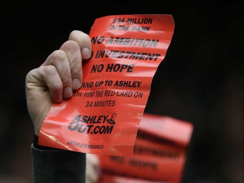 Many of those who did turn up opted to protest against the way owner Mike Ashley is running the club by standing up and brandishing red cards in the 34th minute, in reference to a reported fund of £34 million ($51.6m) that is sitting in the bank while the team stagnates on the park.