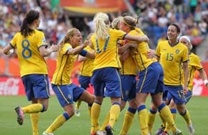 But in the dramatic closing stages, substitute midfielder Marie Hammarstrom won the game - and the bronze medal - for Sweden with a superb strike in the 82nd minute.