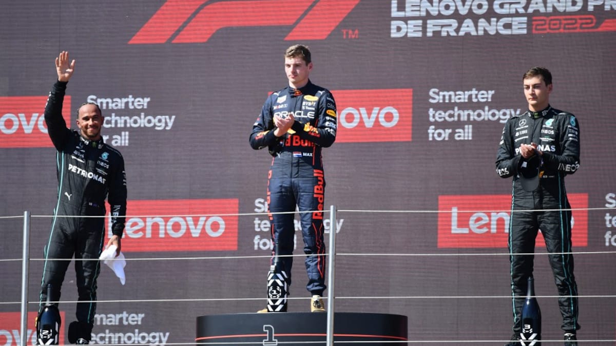 World champion Max Verstappen took full advantage of Charles Leclerc crashing out of the lead to extend his advantage in this year's title race with a crushing victory ahead of Lewis Hamilton in Sunday's sun-baked French Grand Prix. The 24-year-old Dutchman drove with flawless control in the searing heat to guide his Red Bull home 10.587 seconds ahead of Mercedes' Hamilton, in his 300th race, with George Russell, in the second Mercedes, beating Sergio Perez in the other Red Bull, for third.