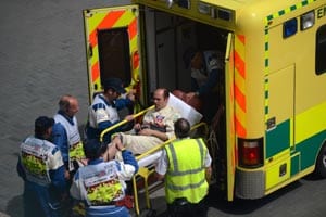 Two of the mechanics were taken to the medical centre sporting cuts, bruises and a dislocated thumb, the third mechanic bruised his foot and was treated in the team's garage.