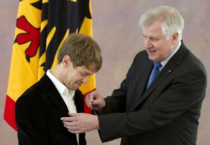 Horst Seehofer, Germany's acting president, praised the 24-year-old Vettel's "strength of character" as he presented the Red Bull driver with the Silver Laurel Leaf on Friday.