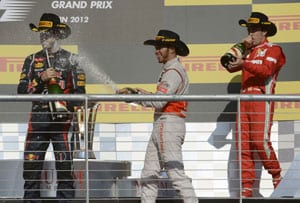 Amazingly, it was the first time F1's best three drivers of the current crop had shared a podium and, to mark the Texan location, all three wore Stetson cowboy hats as they celebrated.