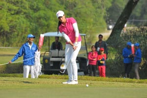 In the benign course conditions at the DGC, the 20-year-old shot a two-under 70 for the second consecutive day to aggregate three-under 143. She finished for a tied fifth place with Ladies European Tour (LET) sensation Charley Hull of England, who shot a 72, and US veteran Beth Allen, who carded day's best round of six-under 66.